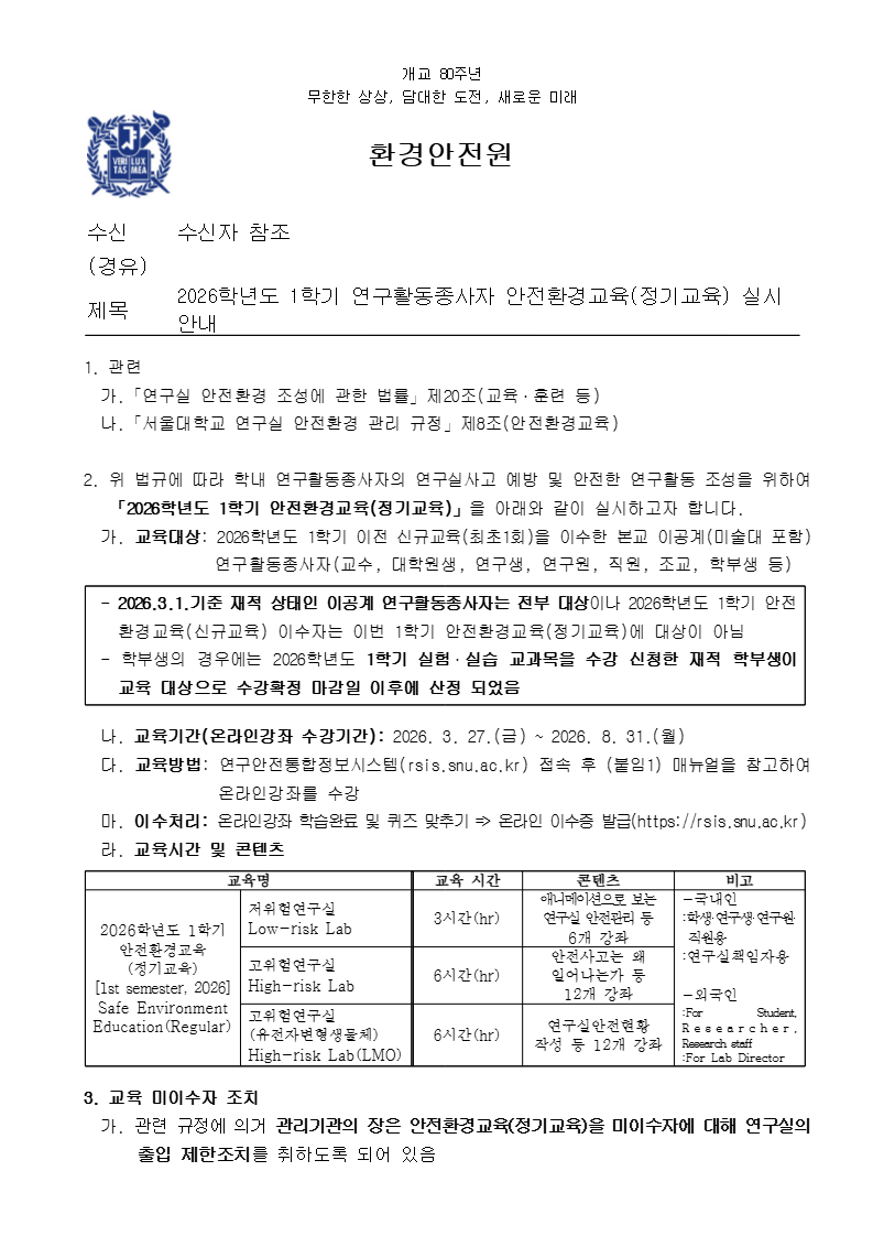 [해동아이디어팩토리] (정기)안전환경교육 실시 안내